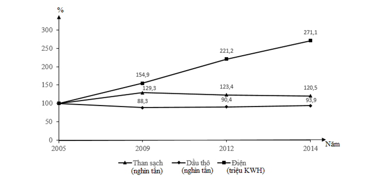 Để thể hiện tốc độ tăng trưởng diện tích gieo trồng cây công nghiệp phân theo nhóm cây ở nước ta giai đoạn 2005 - 2018, biểu đồ nào sau đây thích hợp nhất?