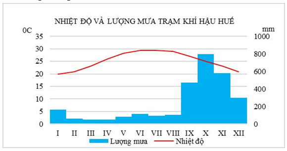 C. Tháng có nhiệt độ cao nhất của Huế là tháng có lượng mưa lớn nhất.