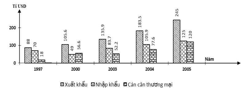 Câu 8: Cho biểu đồ về thương mại của Liên Bang Nga qua các năm, Biểu đồ trên thể hiện nội dung nào?