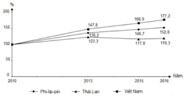 D. Cơ cấu GDP của Phi-lip-pin, Thái Lan và Việt Nam, gia đoạn 2010-2016.