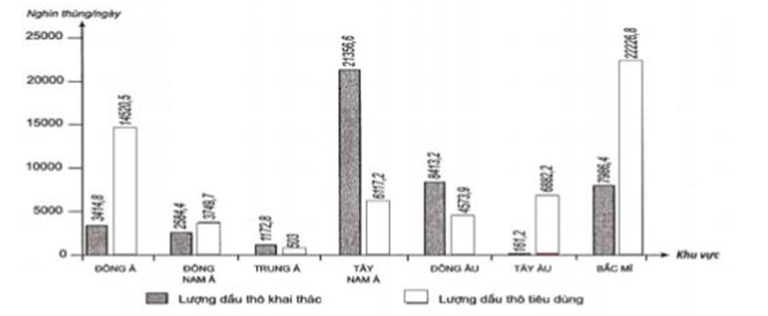 Câu 10: Cho biểu đồ về dầu thô ở một số khu vực của thế giới năm 2003: