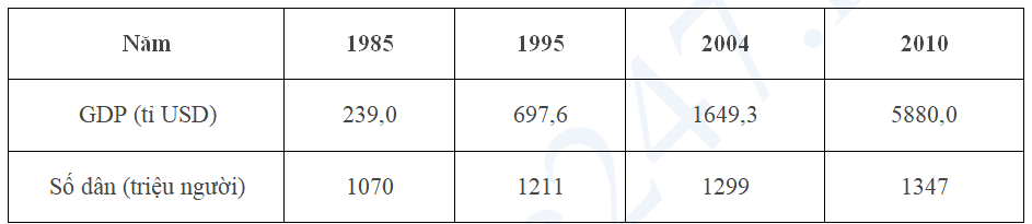 Câu 2: Cho bảng số liệu: