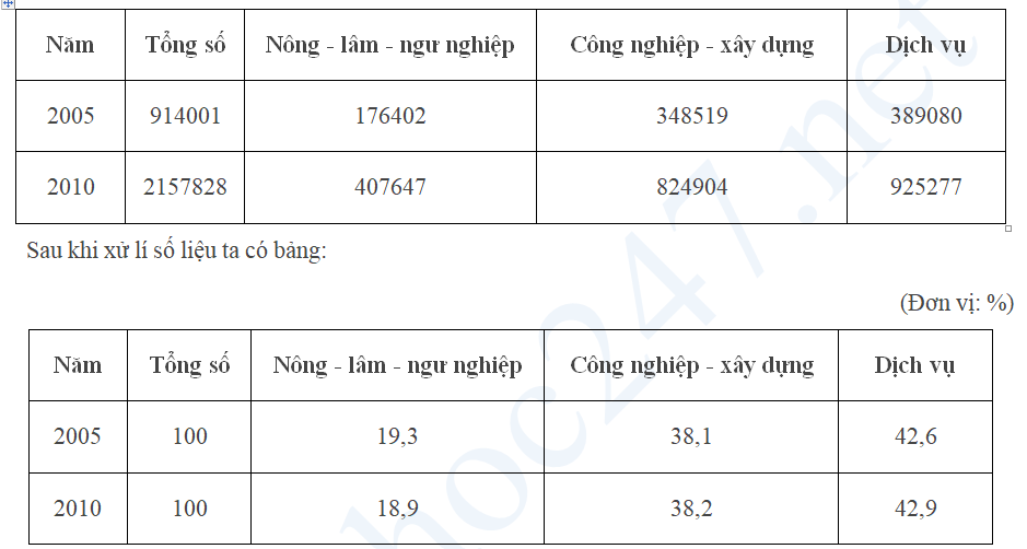 Câu 9: Cho bảng số liệu sau: