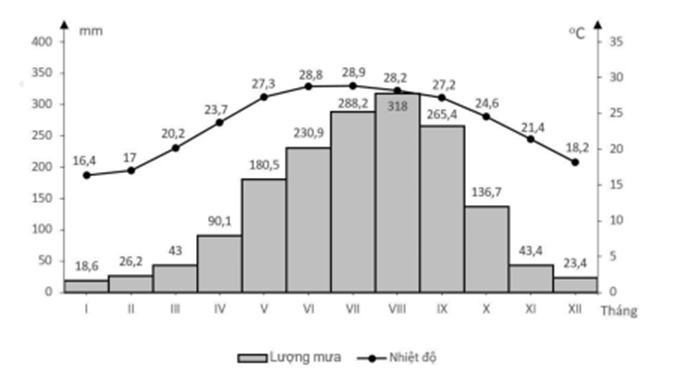 Căn cứ vào biểu đồ, cho biết nhận xét nào đúng với đặc điểm khí hậu Hà Nội?