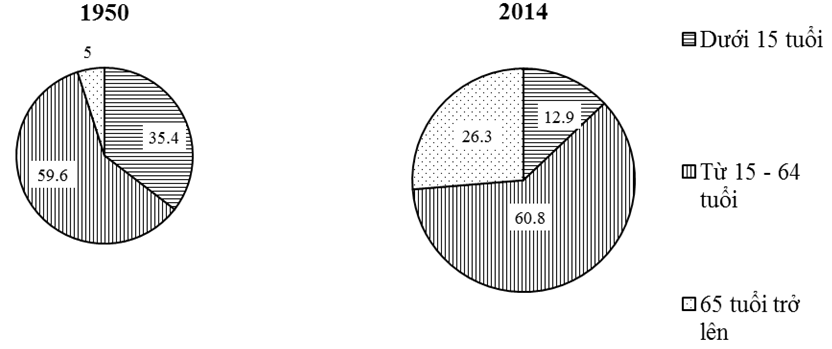 A. Cơ cấu dân số phân nhóm tuổi của Nhật Bản giai đoạn từ 1950 đến năm 2014.