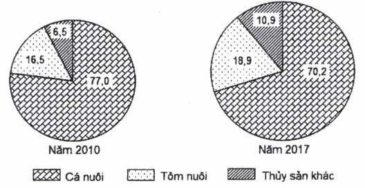 Câu 36: Cho biểu đồ về thủy sản nuôi trồng của nước ta năm 2010 và 2017