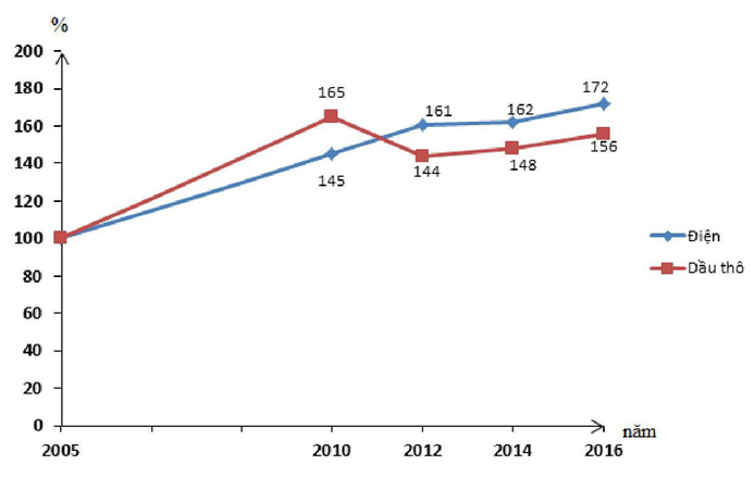 A. Sản lượng dầu thô, điện của Thái Lan từ 2005 – 2016.