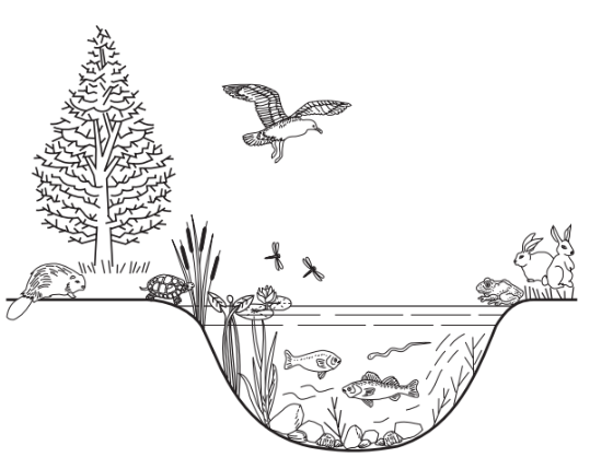 Câu 9: Hình vẽ dưới đây mô tả nhiều loài động thực vật cùng môi trường sống của chúng. Cấp độ tổ chức sống nào sau đây là phù hợp nhất mà hình vẽ trên mô tả?