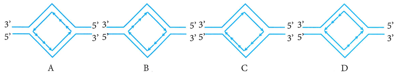 Câu 24: Hình nào sau đây biểu diễn đúng quá trình nhân đôi ADN ở vi khuẩn E.coli?