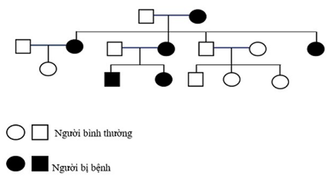 Câu 38: Quan sát sơ đồ phả hệ dưới đây và cho biết quy luật di truyền nào chi phối sự di truyền tính trạng bệnh?