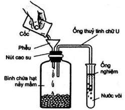 B. Đây là một thí nghiệm chứng tỏ quá trình hô hấp ở hạt đang nảy mầm có sự thải ra CO2.