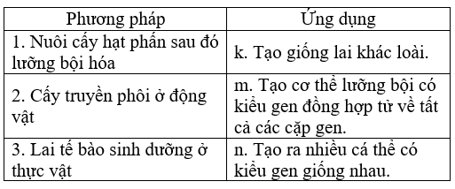 Câu 6: Dưới đây là các phương pháp tạo giống bằng công nghệ tế bào và ứng dụng chủ yếu của các phương pháp