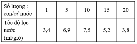 Câu 20: Nghiên cứu khả năng lọc nước của một loài thân mềm thu được bảng như sau: