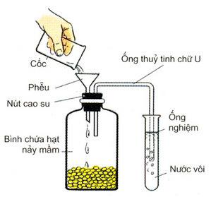 A. Rót nước từ từ qua phễu vào bình chứa hạt nảy mầm để nước đẩy khí CO2 vào ống nghiệm.